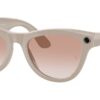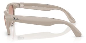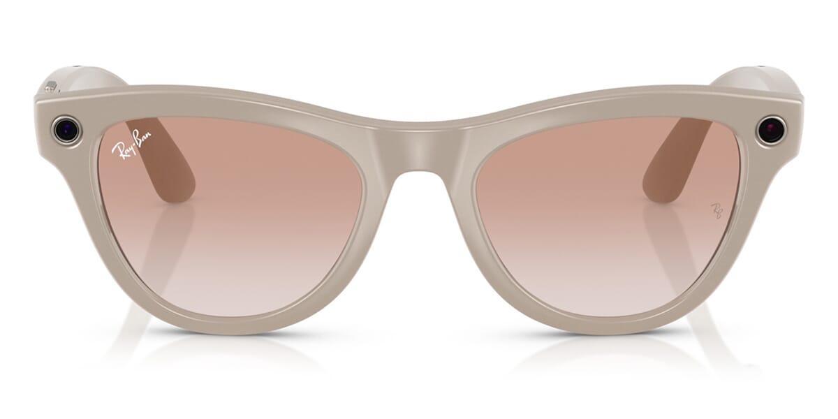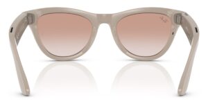 This cat eye Ray-Ban sunglass comes in a chalky grey frame with cinnamon pink gradient lenses.