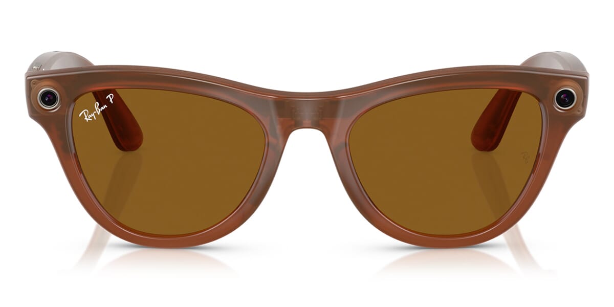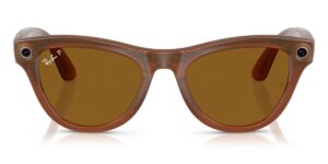 This cat eye Ray-Ban sunglass comes in a caramel frame with brown polarised lenses.
