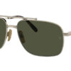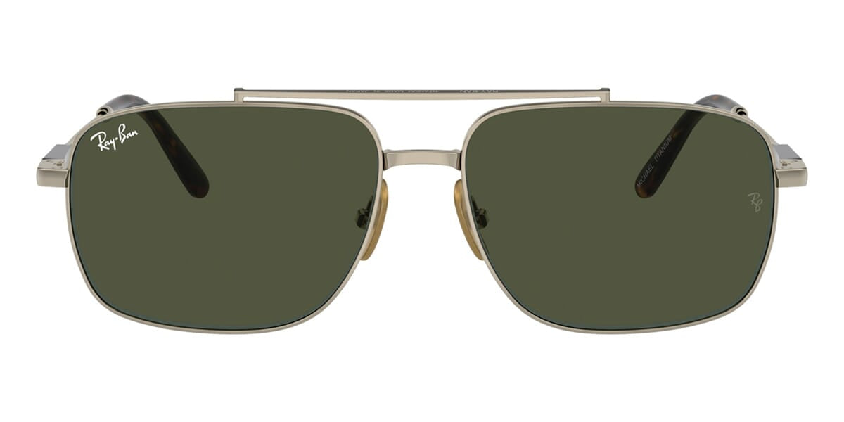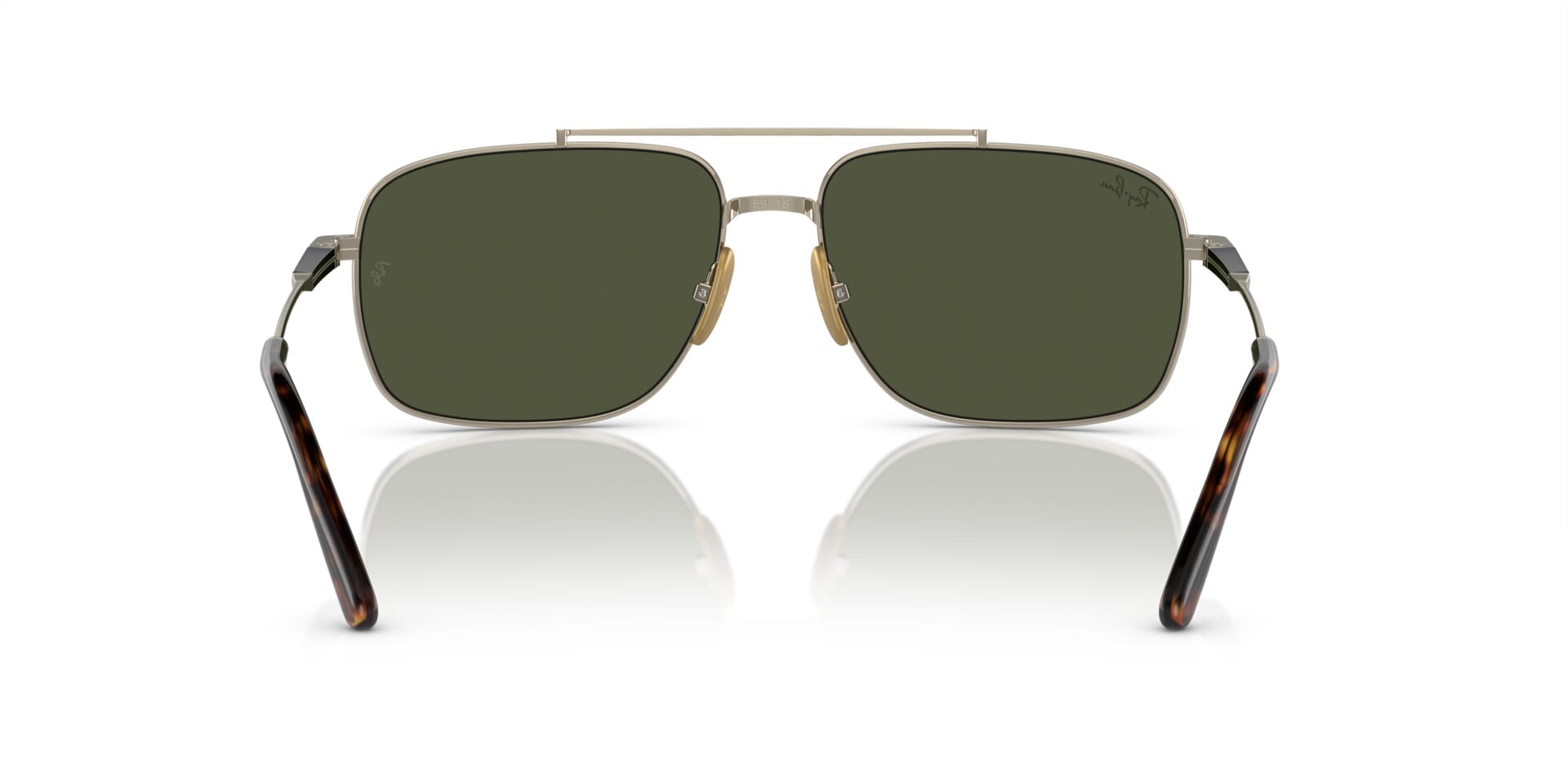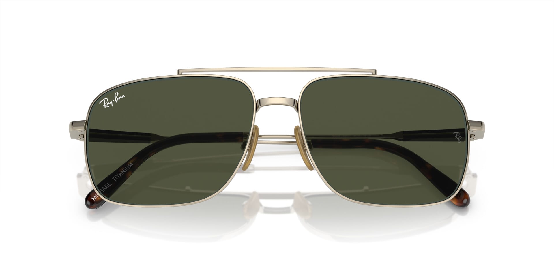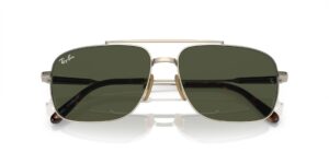 This square Ray-Ban sunglass comes in a gold frame with green lenses.