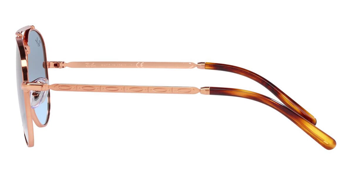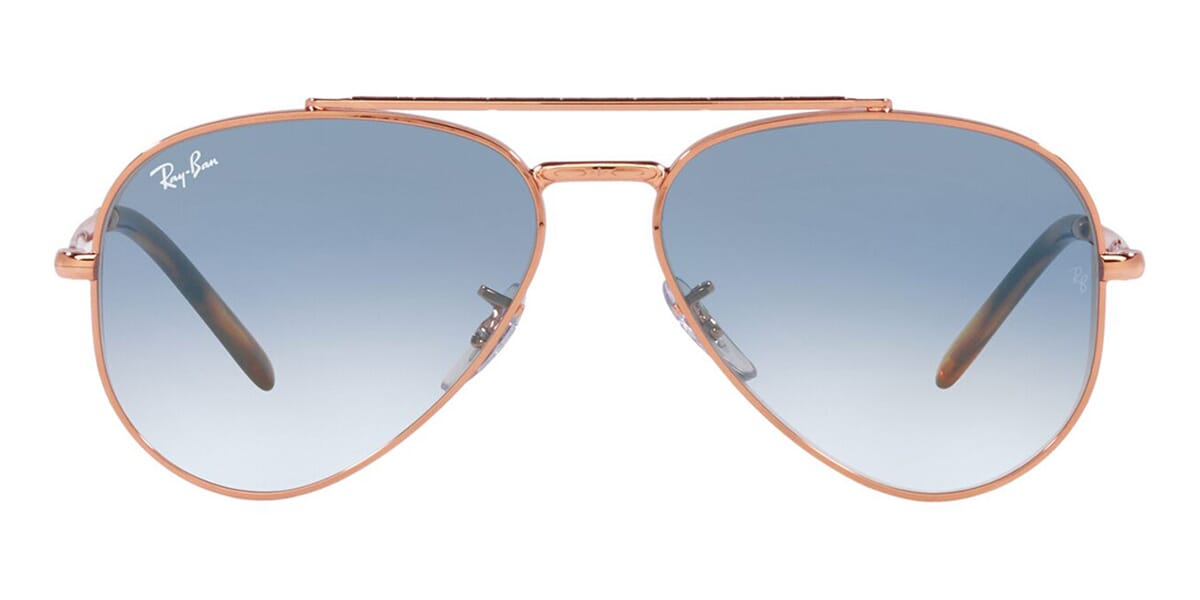 This aviator Ray-Ban sunglass comes in a rose gold frame with blue gradient lenses.