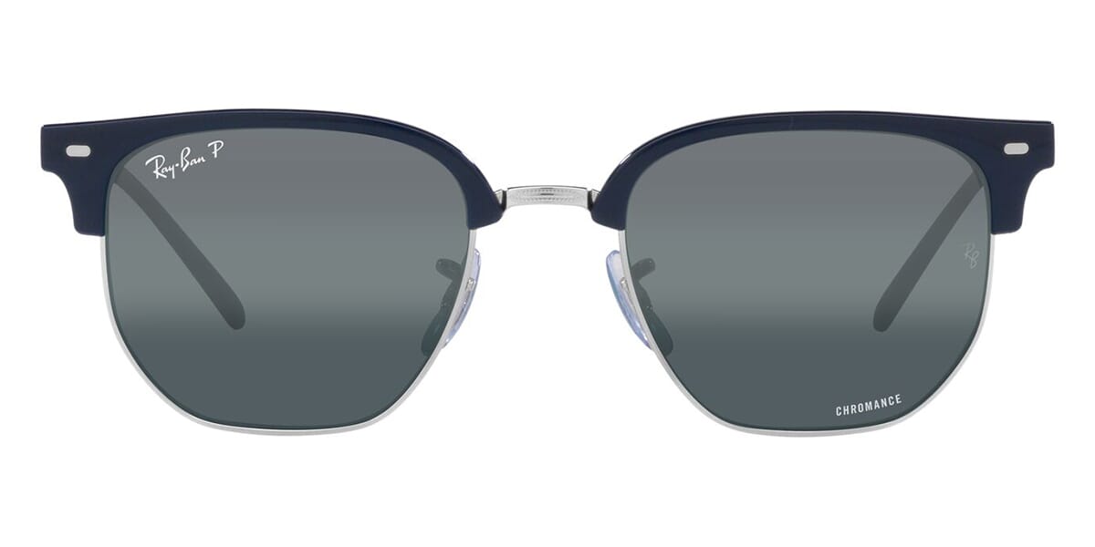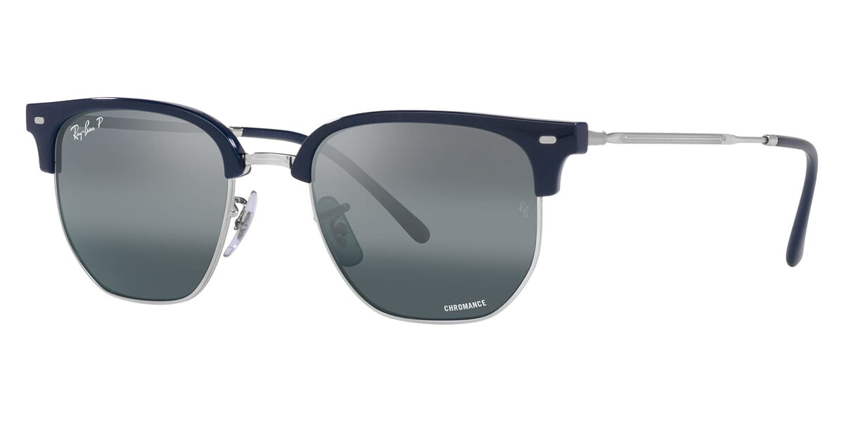 This square Ray-Ban sunglass comes in a blue on silver frame with cromance blue with silver gradient mirror polarised lenses.