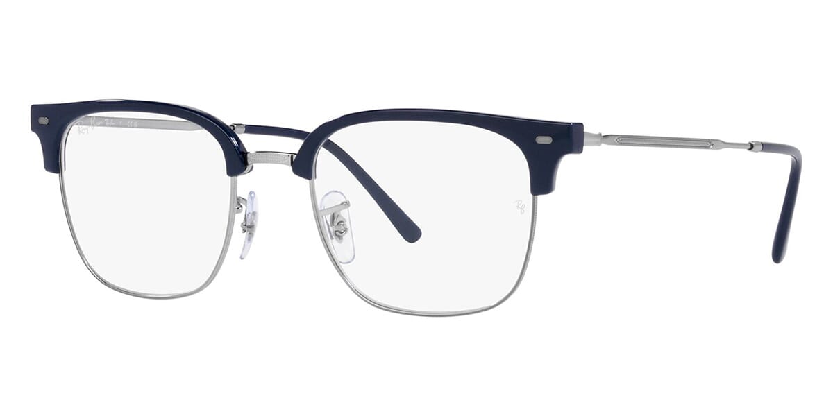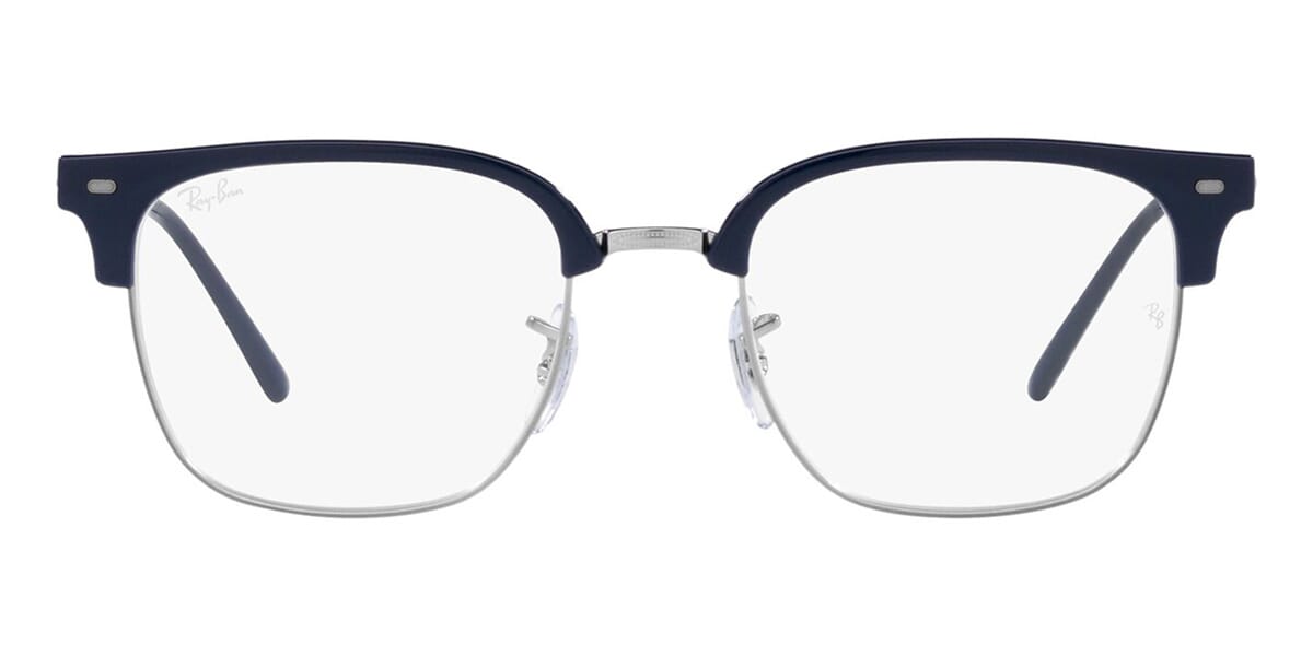 This square Ray-Ban optical comes in a blue on gunmetal frame.