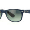 This wayfarer Ray-Ban sunglass comes in a matte blue and crystal frame with grey gradient lenses.