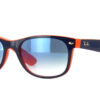 This wayfarer Ray-Ban sunglass comes in a top blue-orange frame with crystal gradient light blue lenses.