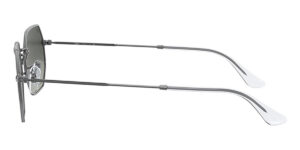 This rectangular Ray-Ban sunglass comes in a gunmetal frame with grey to dark grey gradient lenses.