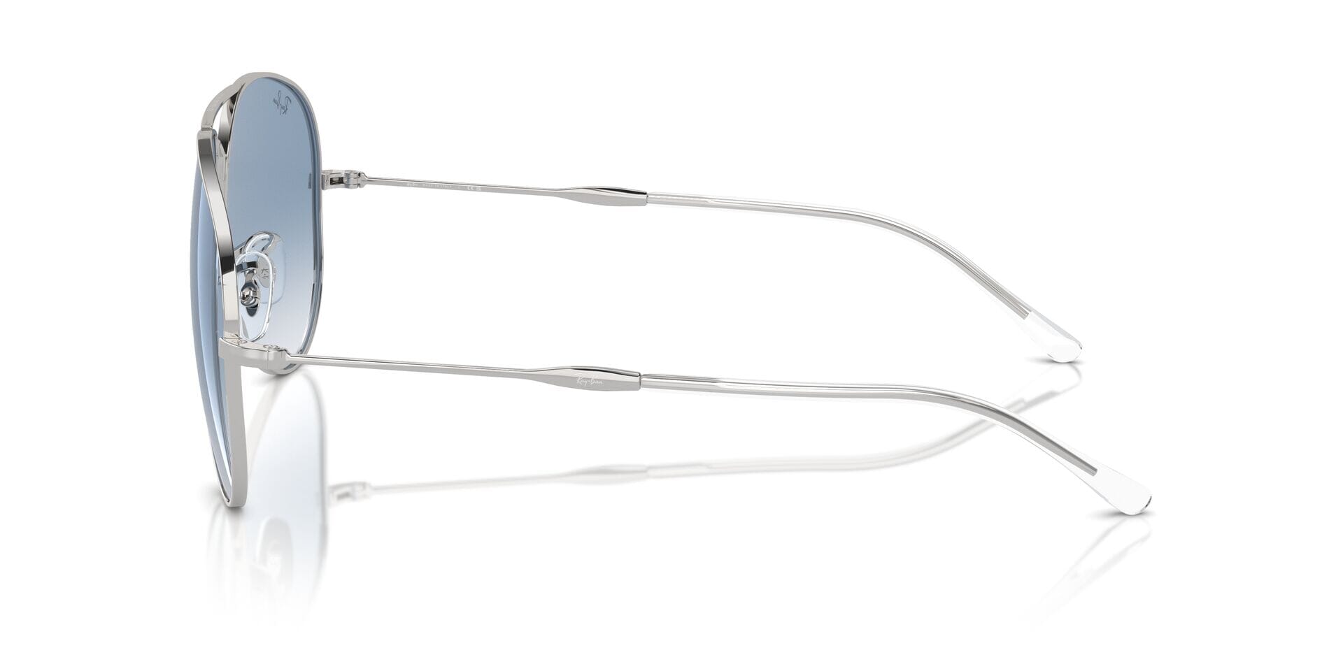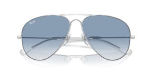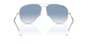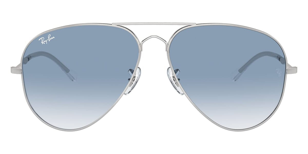This aviator Ray-Ban sunglass comes in a silver frame with blue to clear gradient lenses.