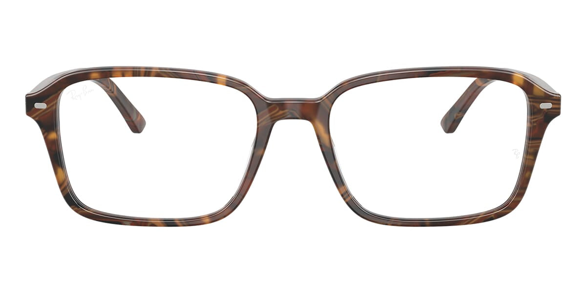 This square Ray-Ban optical comes in a transparent fantasy brown & yellow frame.