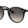 This round Ray-Ban sunglass comes in a black frame with grey gradient lenses.
