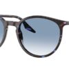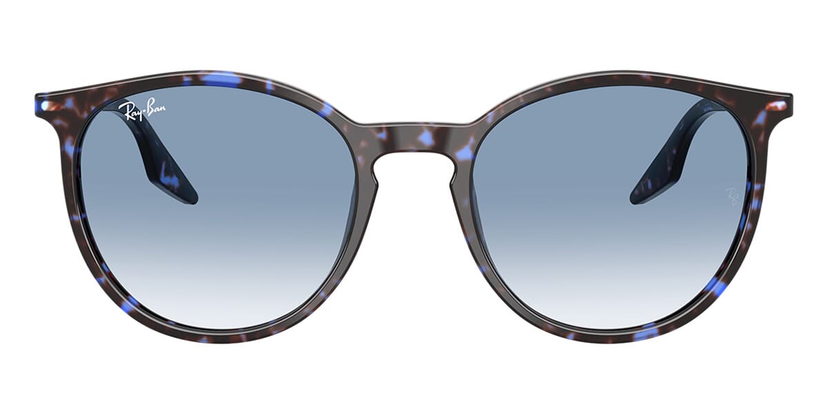 This round Ray-Ban sunglass comes in a havana blue tortoise shell frame with blue to clear gradient lenses.
