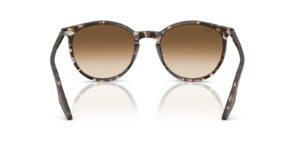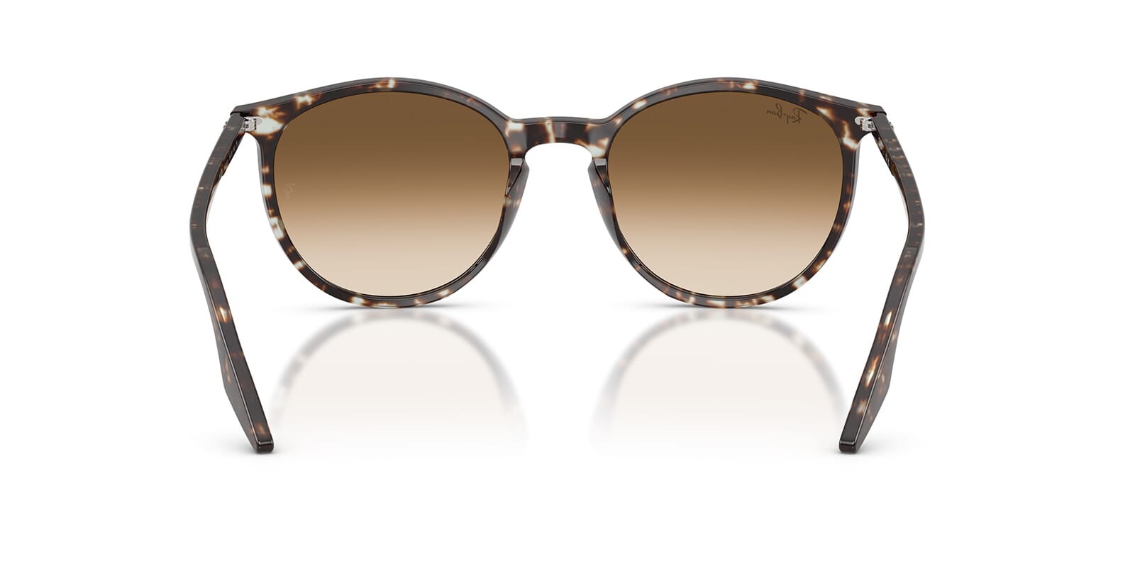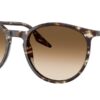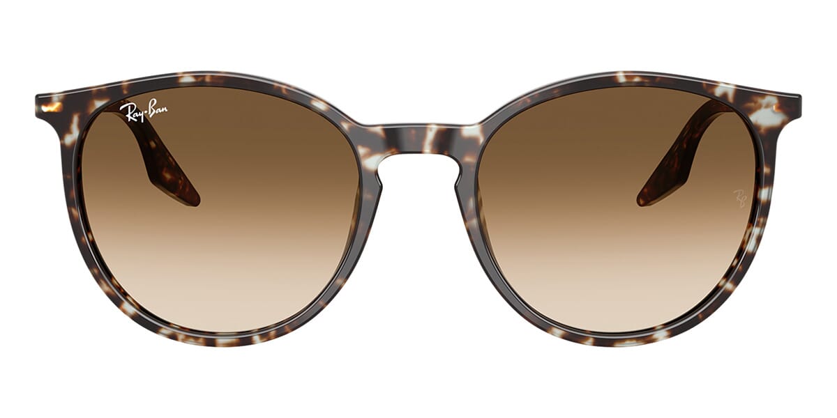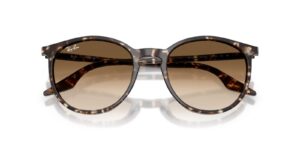 This round Ray-Ban sunglass comes in a havana yellow tortoise shell frame with brown to clear gradient lenses.