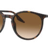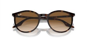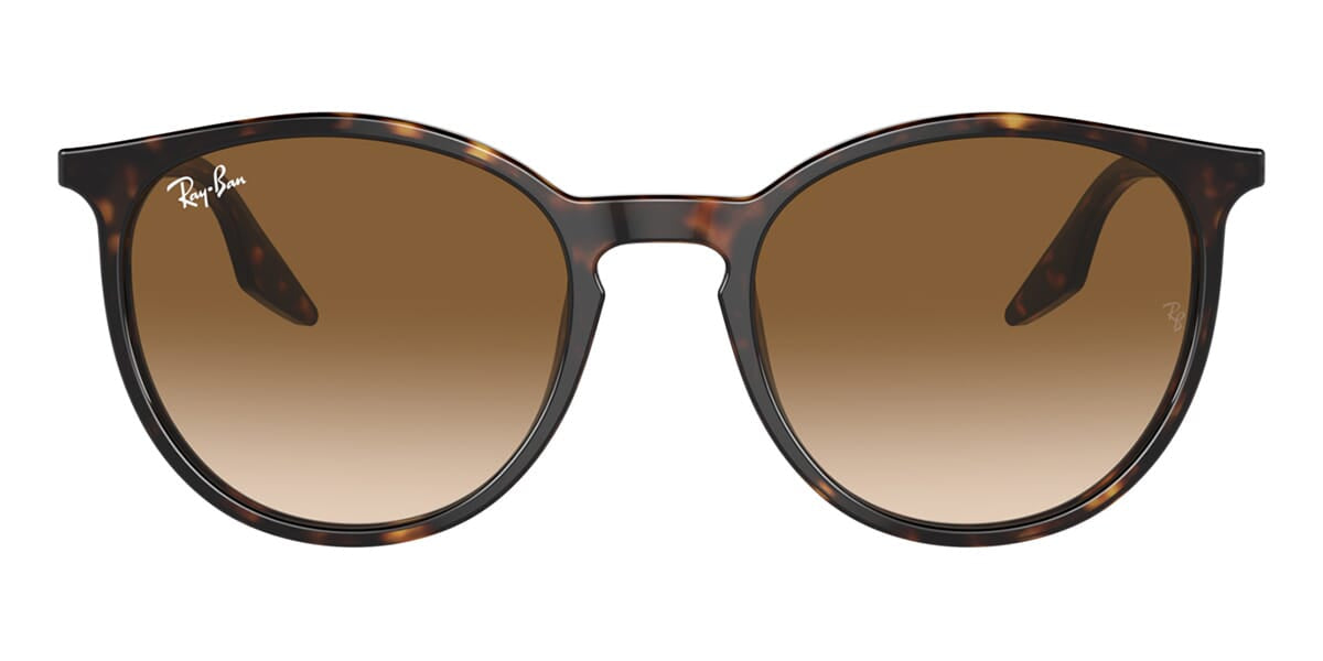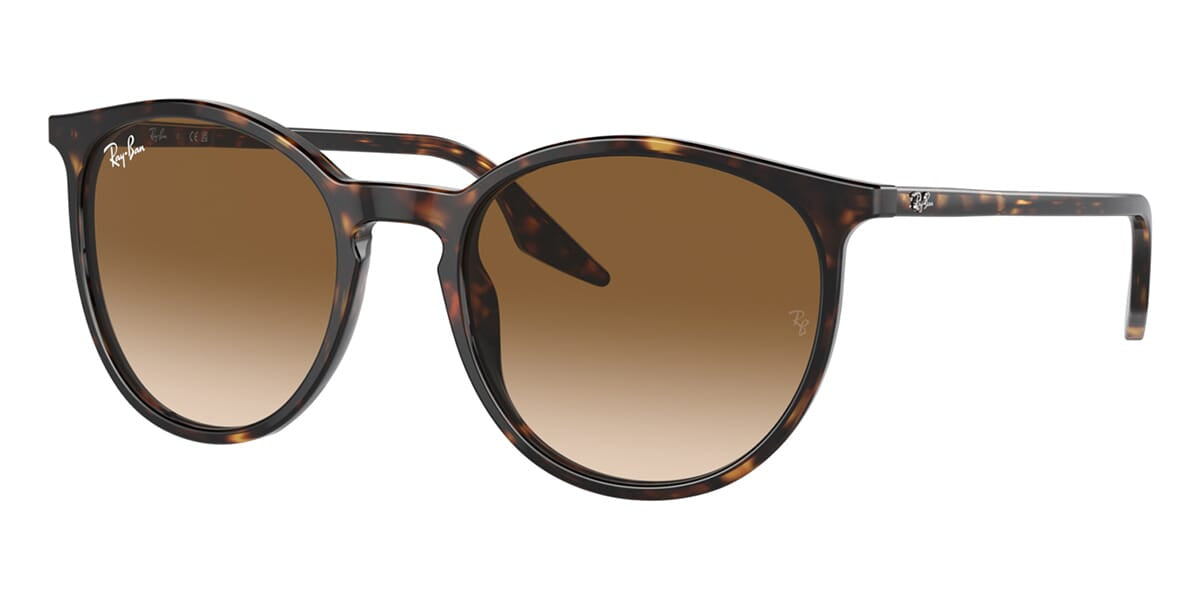 This round Ray-Ban sunglass comes in a havana frame with brown gradient lenses.
