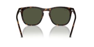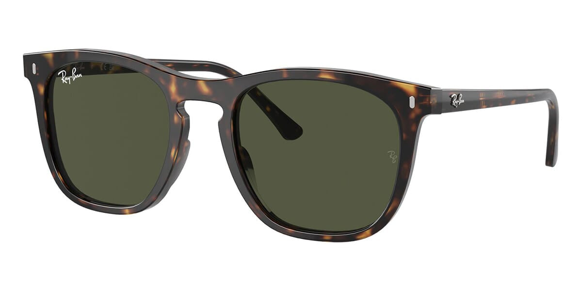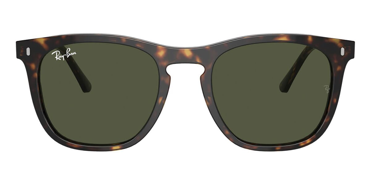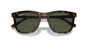 This square Ray-Ban sunglass comes in a havana frame with green lenses.