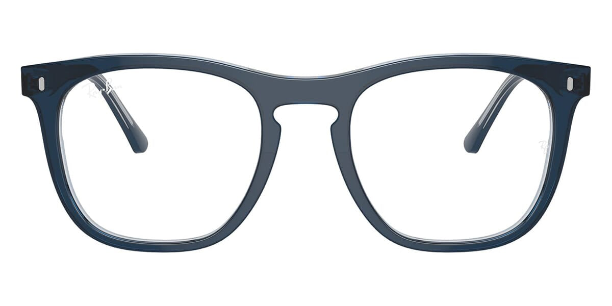 This square Ray-Ban optical comes in a blue on blue crystal frame.