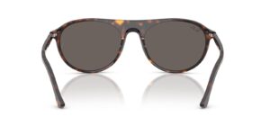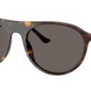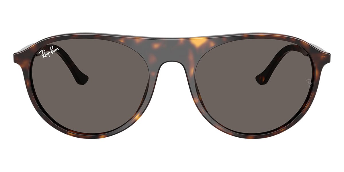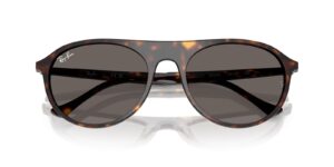 This square Ray-Ban sunglass comes in a havana frame with dark grey lenses.