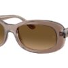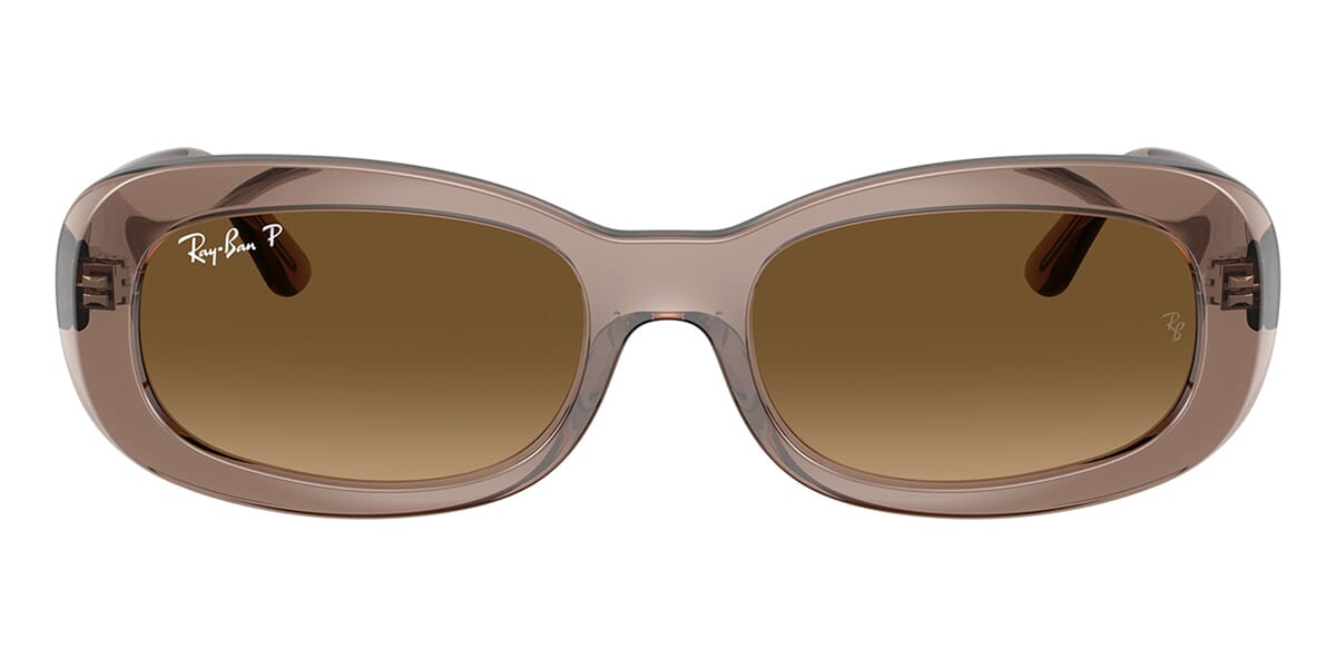 This round Ray-Ban sunglass comes in a beige crystal frame with brown gradient polarised lenses.