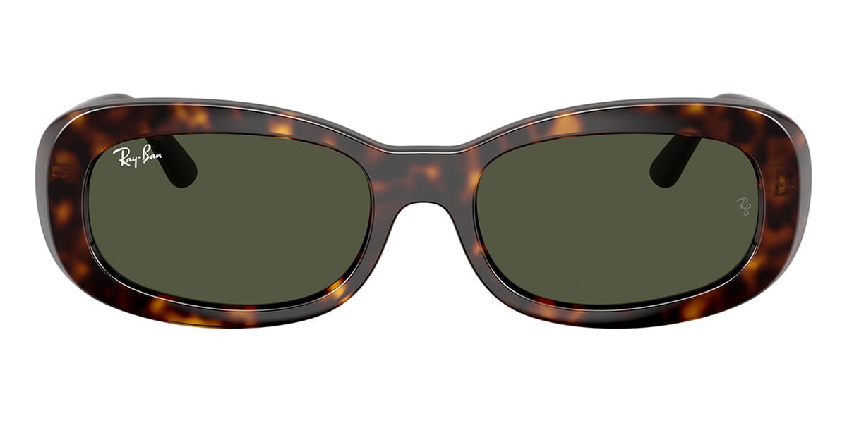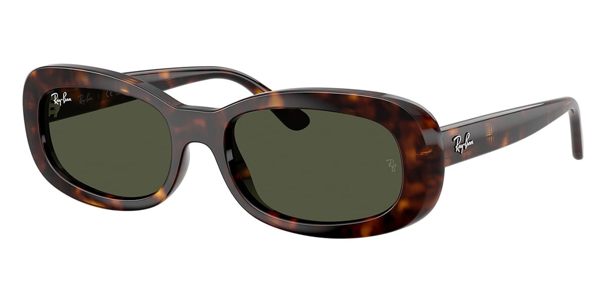 This round Ray-Ban sunglass comes in a havana frame with green lenses.