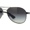 This aviator Ray-Ban sunglass comes in a matte gunmetal frame with grey gradient lenses.