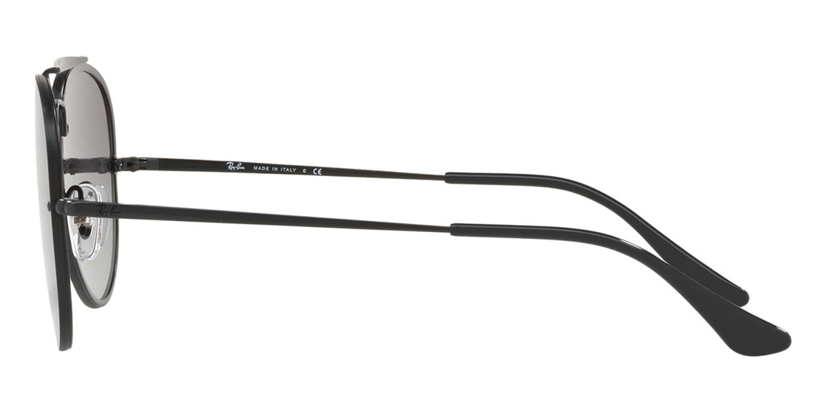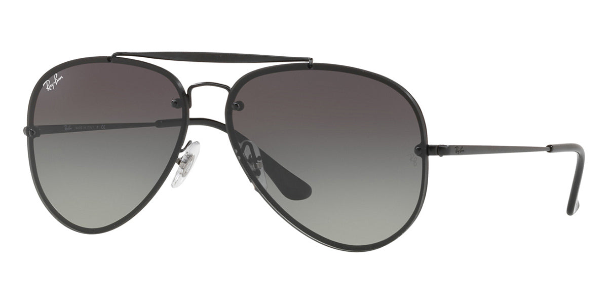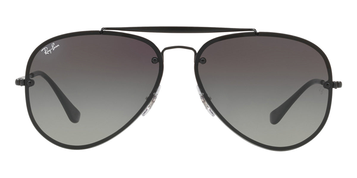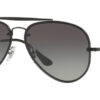 This aviator Ray-Ban sunglass comes in a demigloss black frame with grey gradient dark grey lenses.
