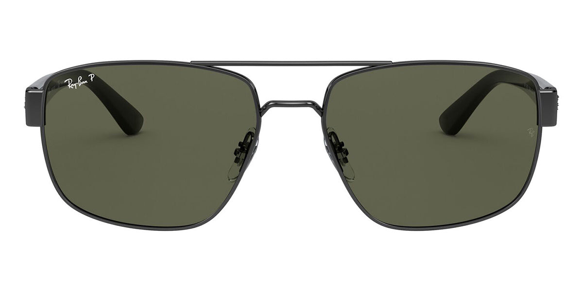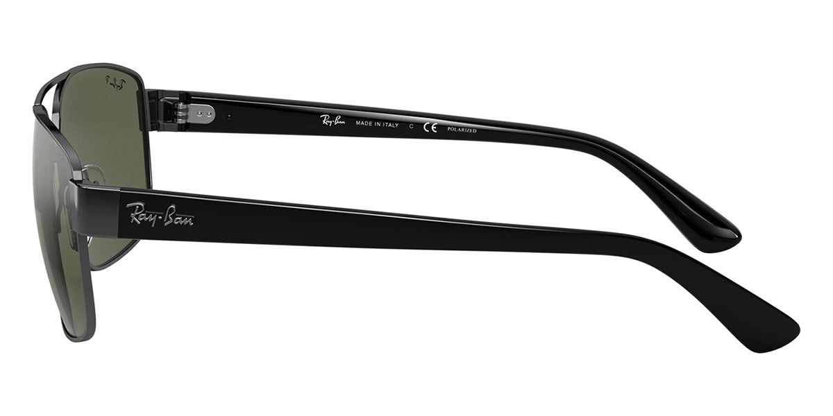 This aviator Ray-Ban sunglass comes in a shiny gunmetal frame with green polarised lenses.