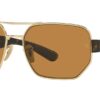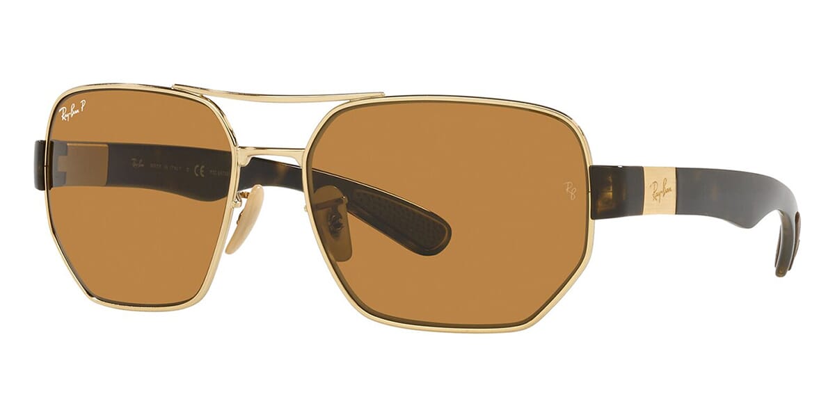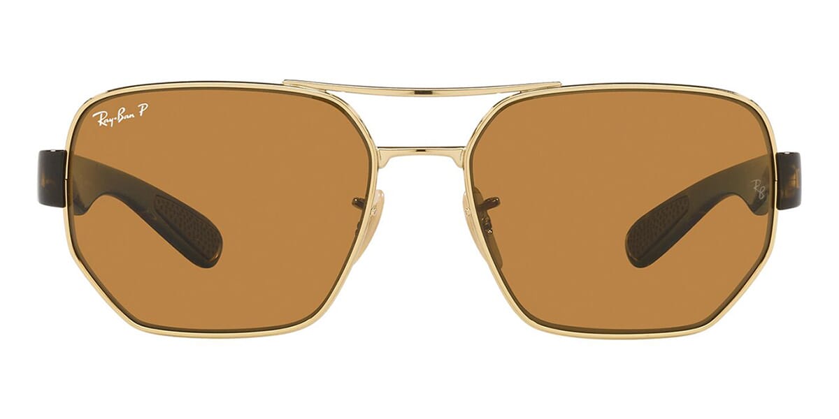 This rectangular Ray-Ban sunglass comes in a arista frame with dark brown polarised lenses.