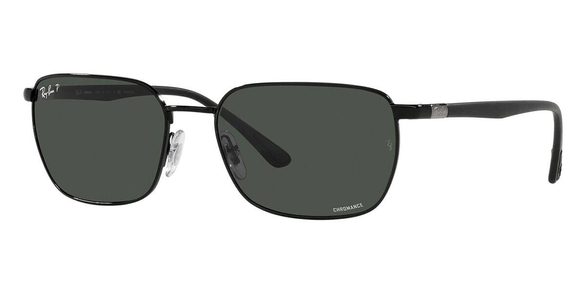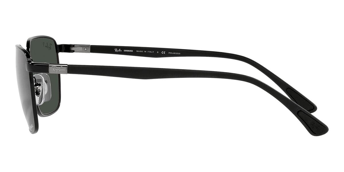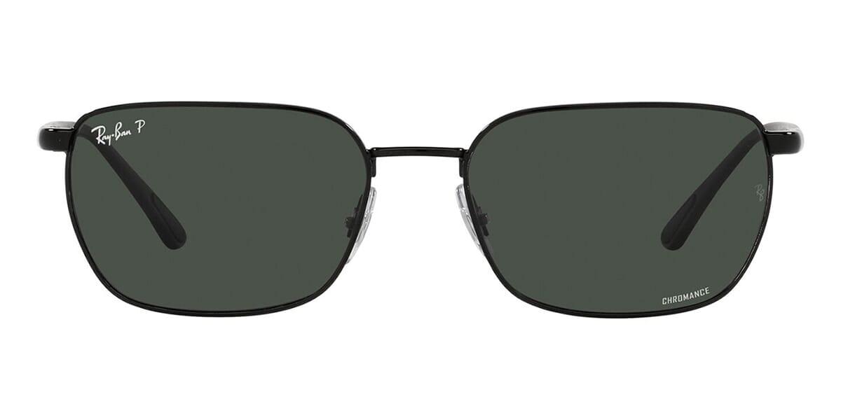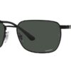 This rectangular Ray-Ban sunglass comes in a black frame with dark grey polarised lenses.