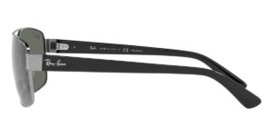 This rectangular Ray-Ban sunglass comes in a gunmetal frame with green polarised lenses.