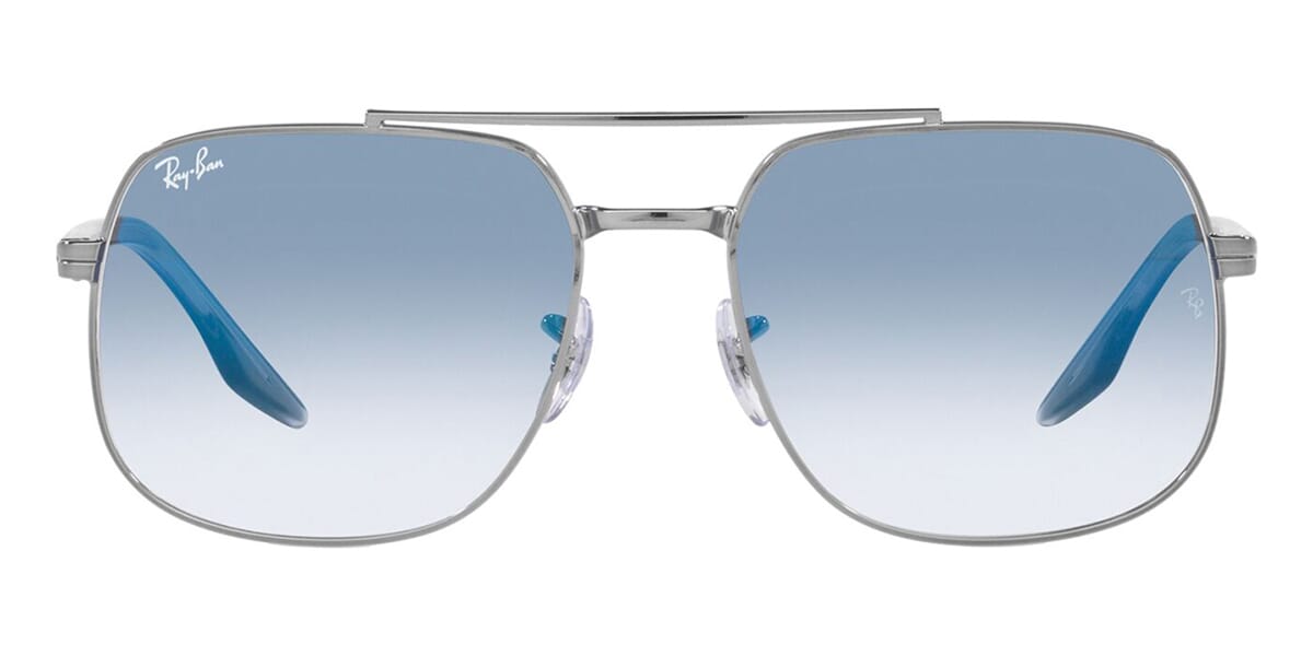 This square Ray-Ban sunglass comes in a gunmetal frame with blue gradient lenses.