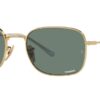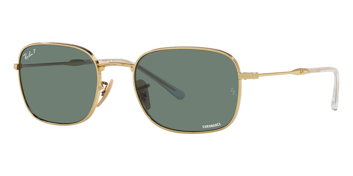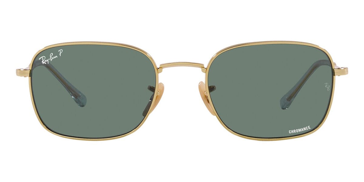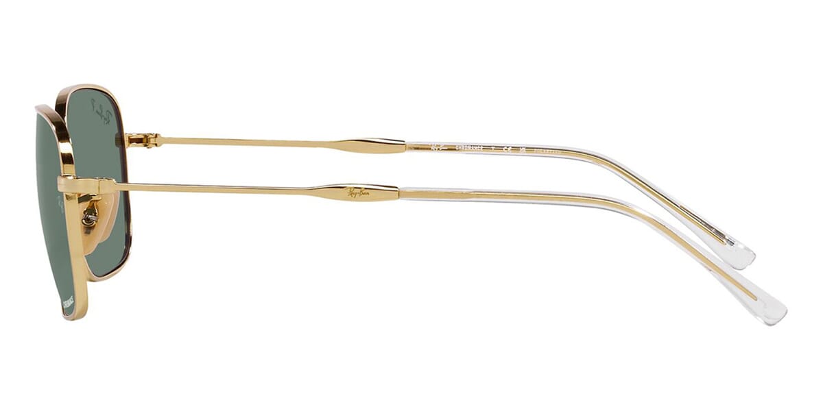 This square Ray-Ban sunglass comes in a arista frame with green chromance lenses.