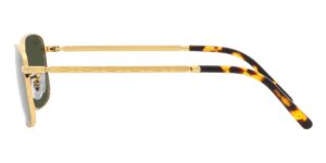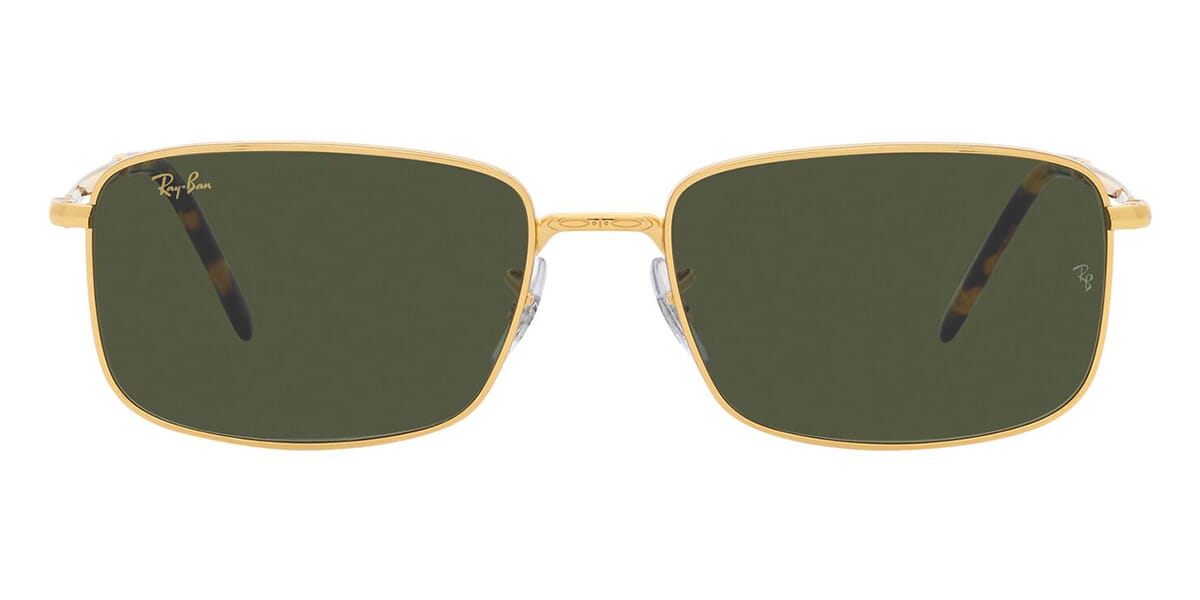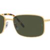 This rectangular Ray-Ban sunglass comes in a legend gold frame with green chromance lenses.