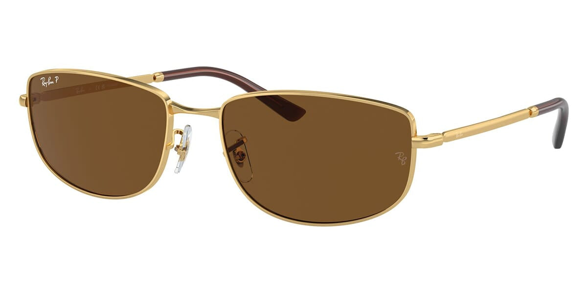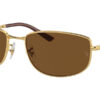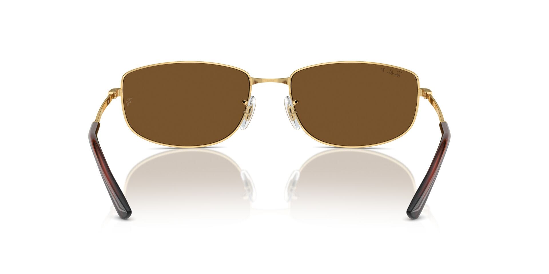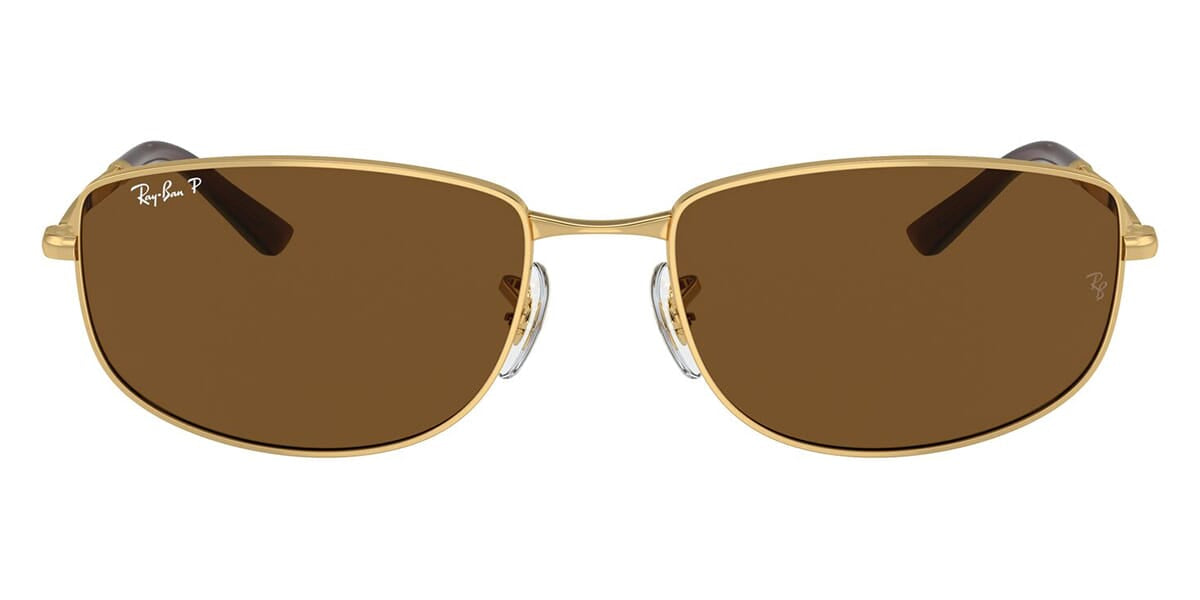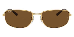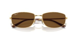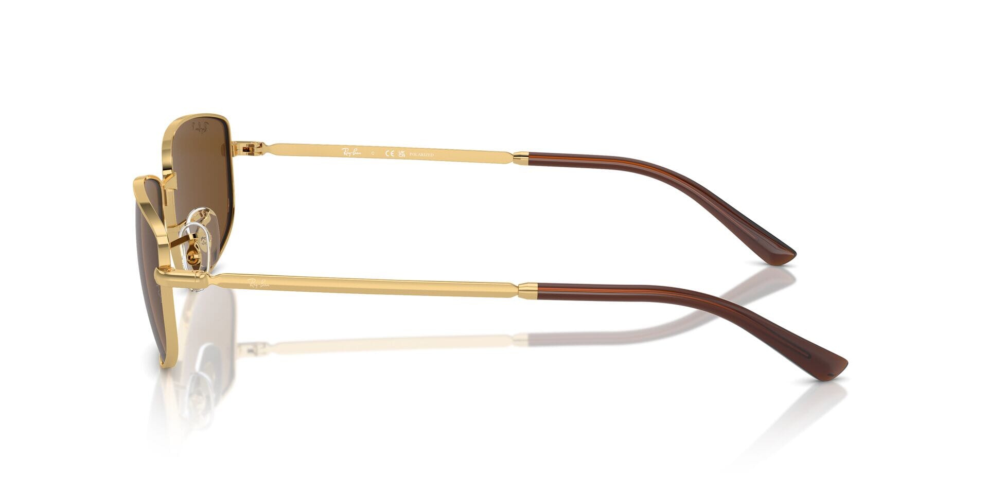 This rectangular Ray-Ban sunglass comes in a gold frame with brown polarised lenses.