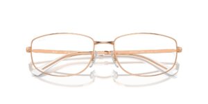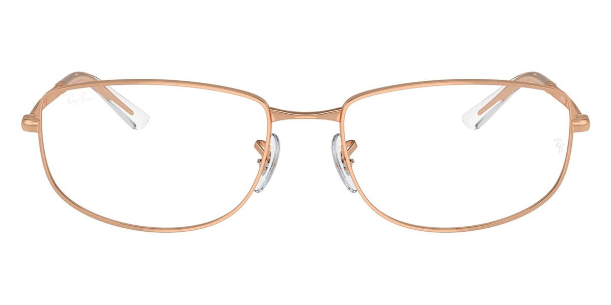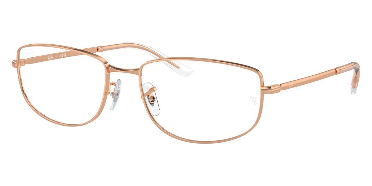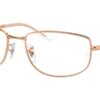 This rectangular Ray-Ban optical comes in a rose gold frame.