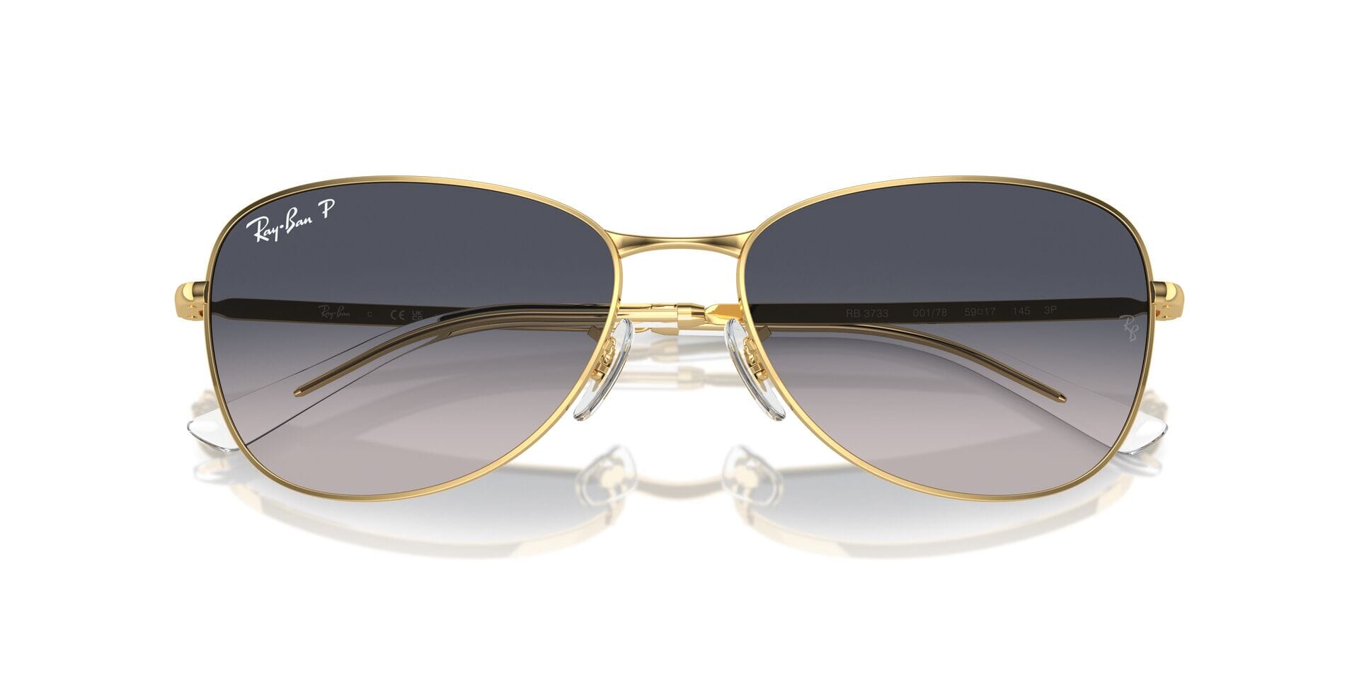 This aviator Ray-Ban sunglass comes in a gold frame with blue gradient polarised lenses.