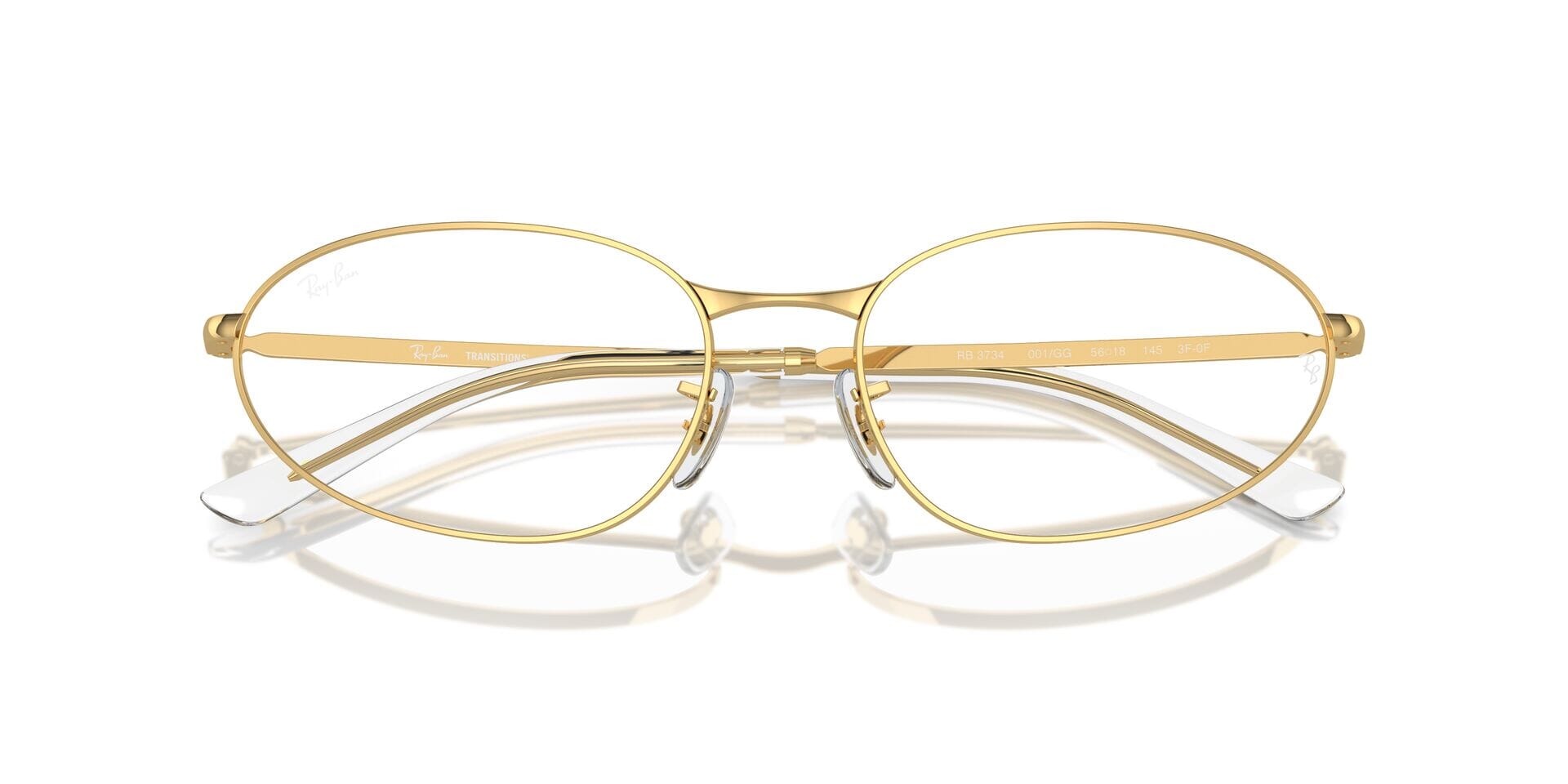 This rectangular Ray-Ban sunglass comes in a gold frame with clear to blue photochromic lenses.