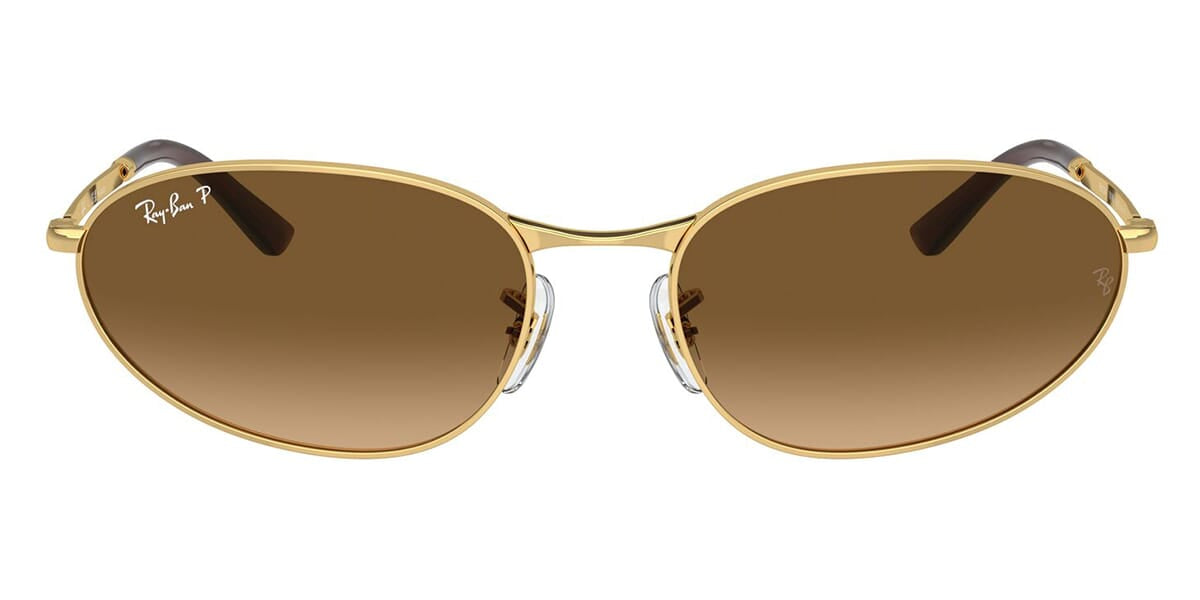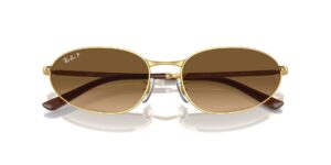 This rectangular Ray-Ban sunglass comes in a gold frame with brown gradient polarised lenses.
