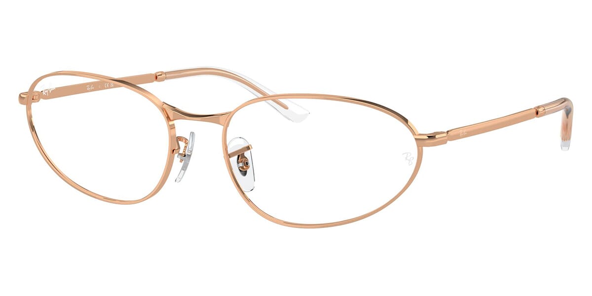 This rectangular Ray-Ban optical comes in a rose gold frame.
