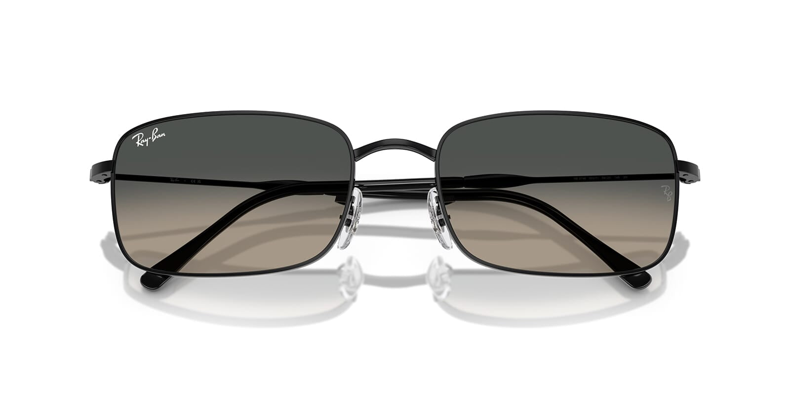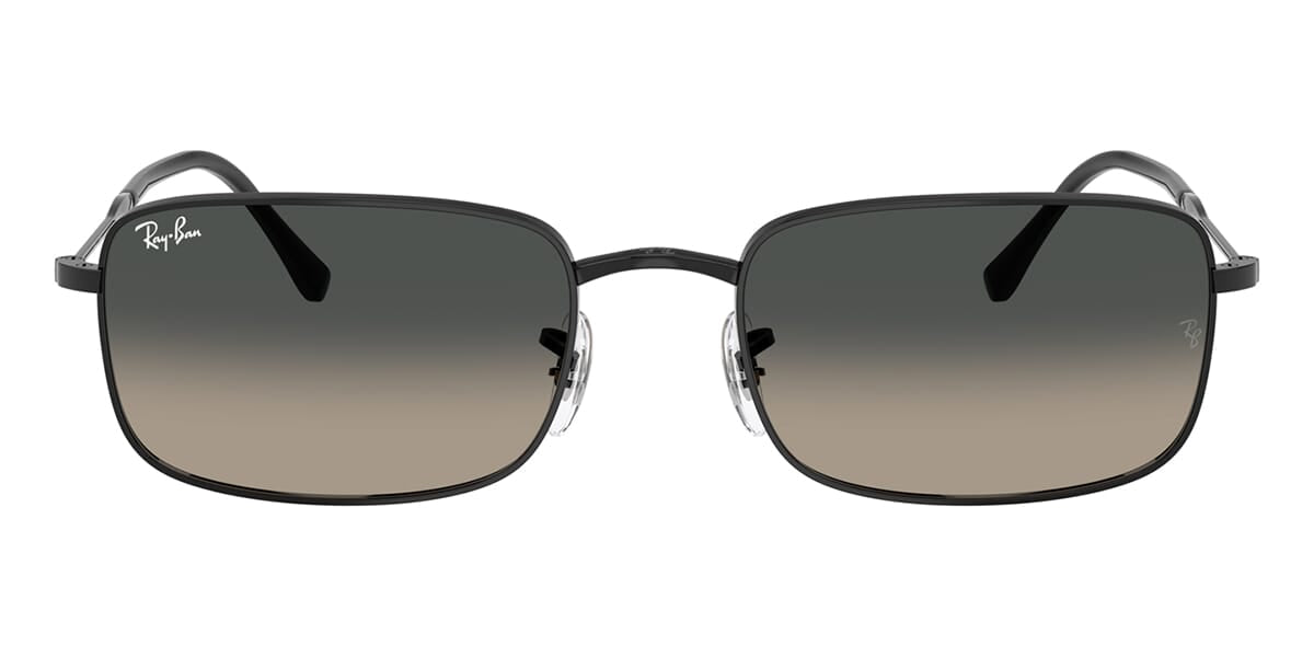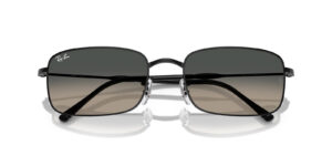 This rectangular Ray-Ban sunglass comes in a black frame with grey gradient lenses.