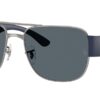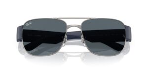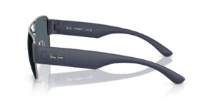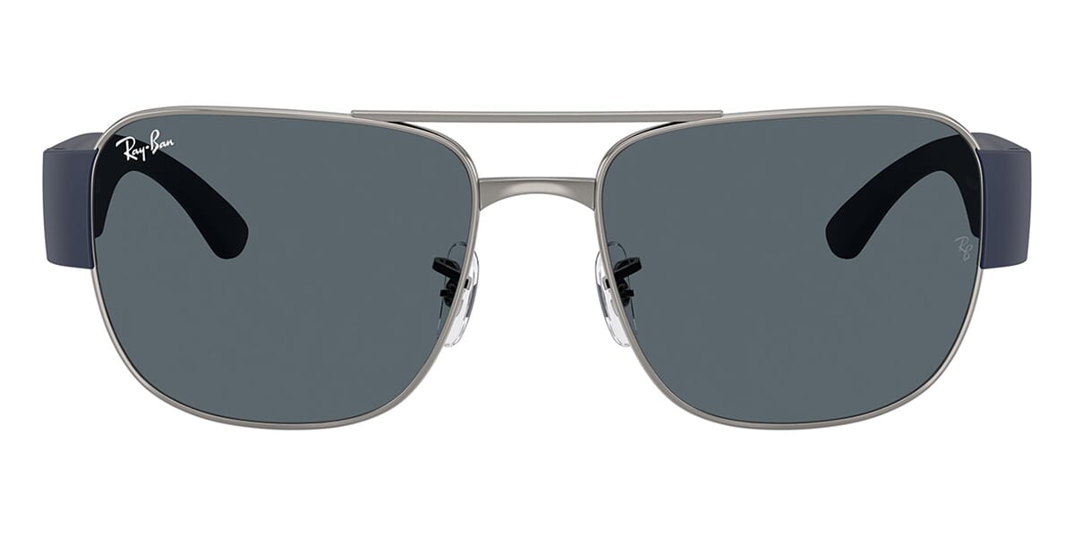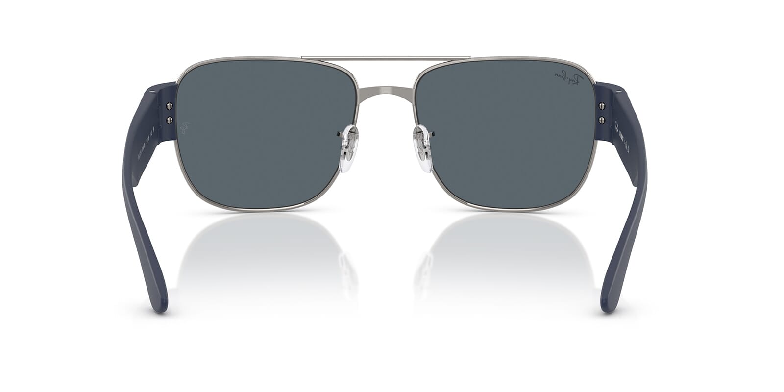 This square Ray-Ban sunglass comes in a gunmetal frame with blue lenses.