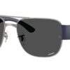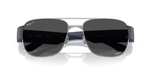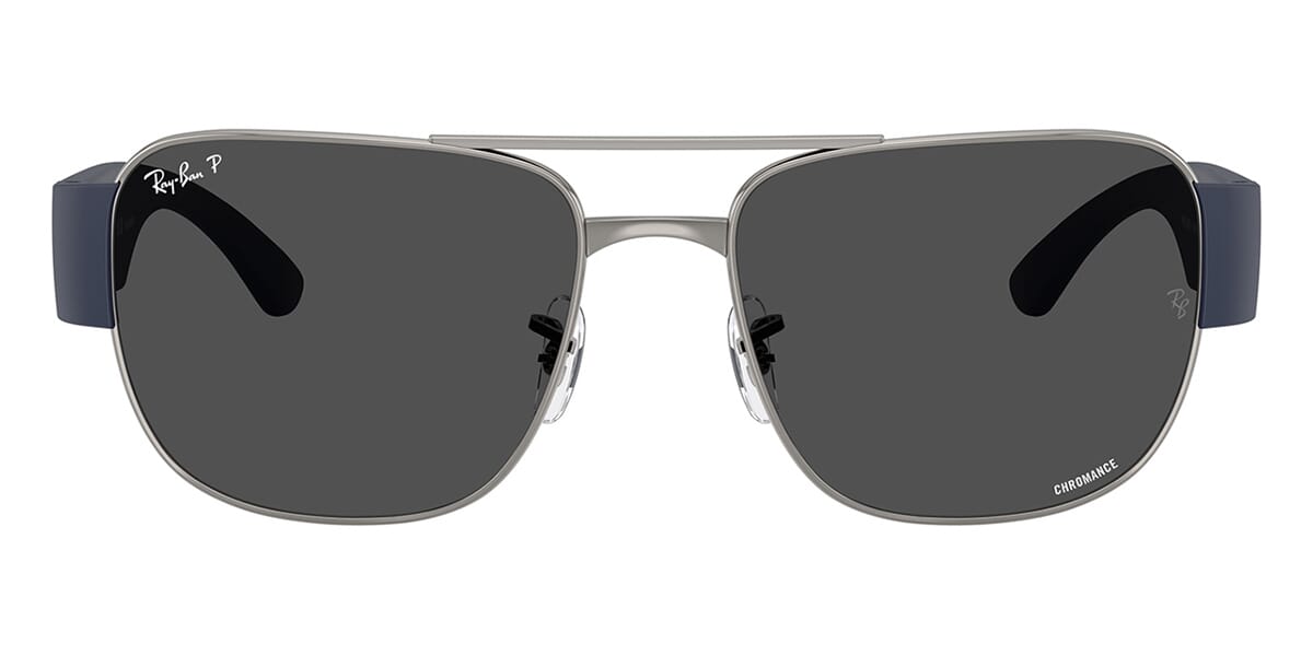 This square Ray-Ban sunglass comes in a gunmetal frame with dark grey polarised lenses.