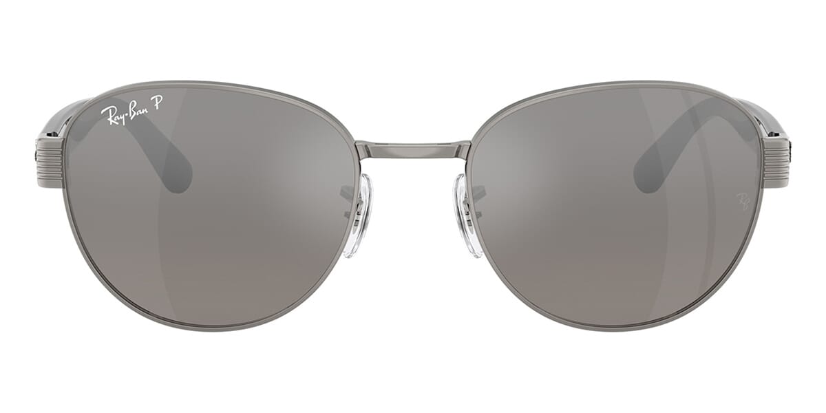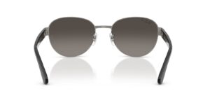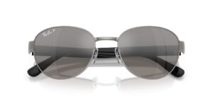 This square Ray-Ban sunglass comes in a gunmetal frame with grey gradient with mirror silver lenses.
