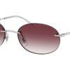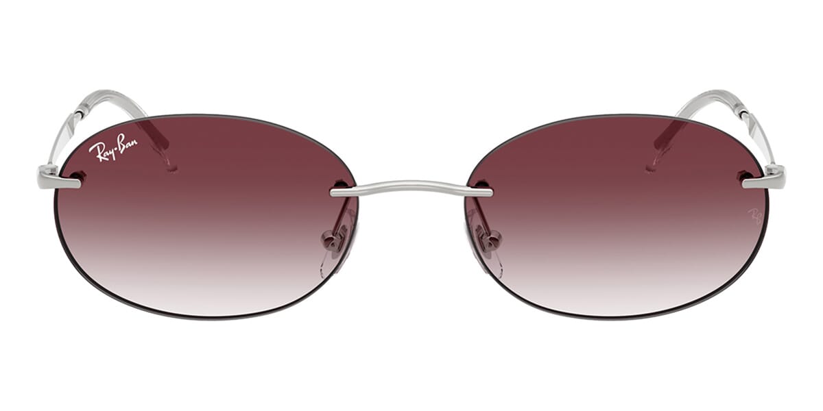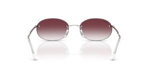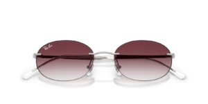 This round Ray-Ban sunglass comes in a silver frame with dark violet to clear gradient lenses.
