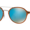 This square Ray-Ban sunglass comes in a shiny brown frame with brown to dark brown gradient mirrored lenses.