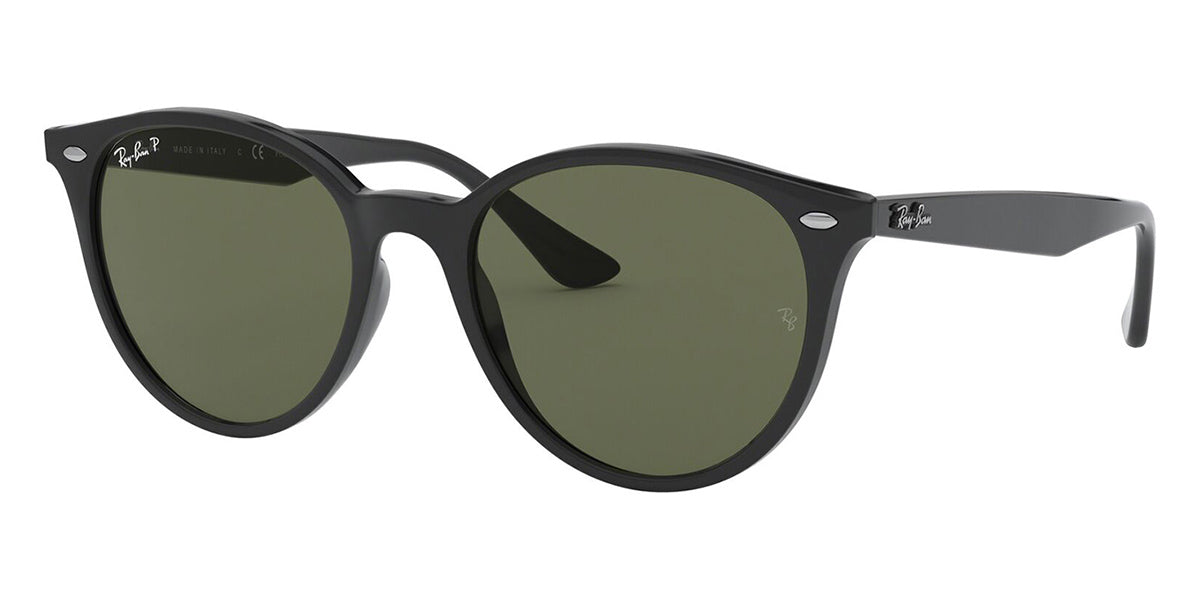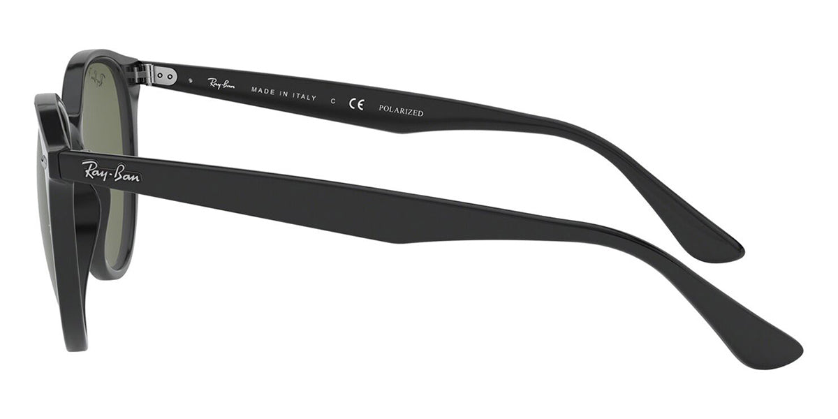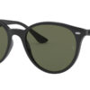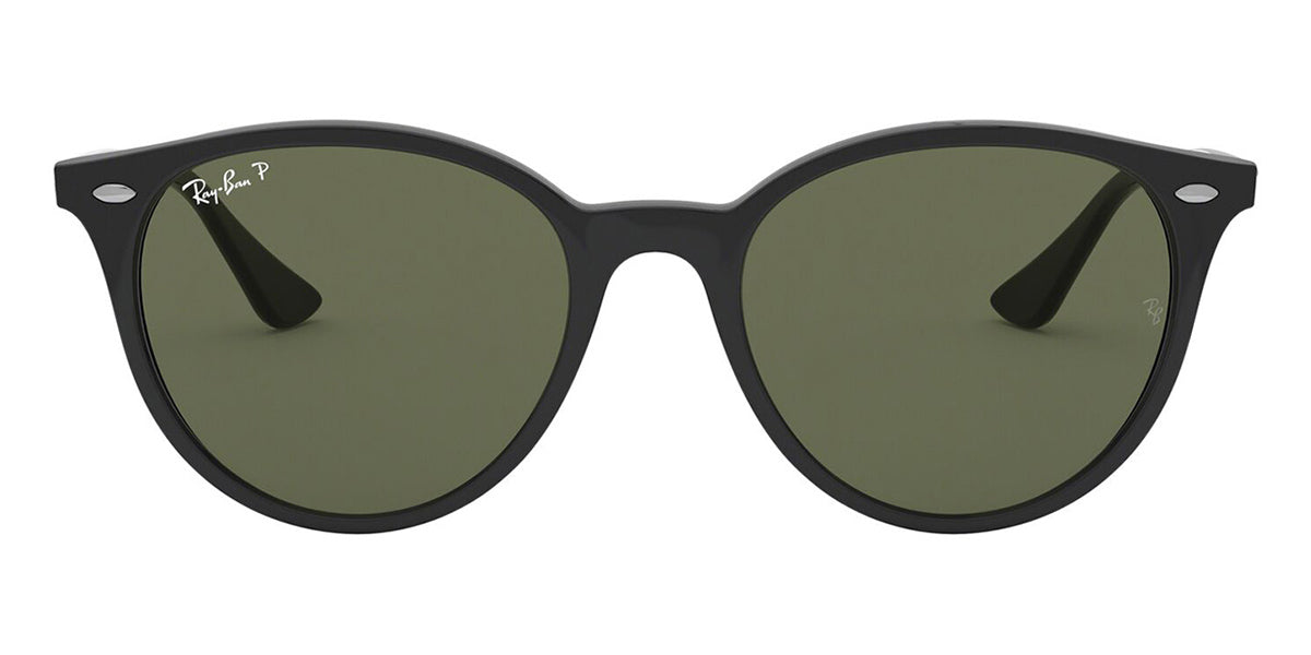 This round Ray-Ban sunglass comes in a black frame with green polarised lenses.