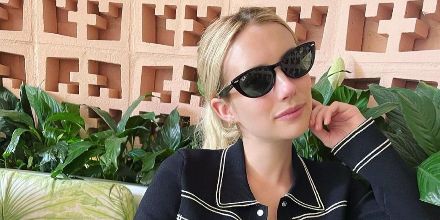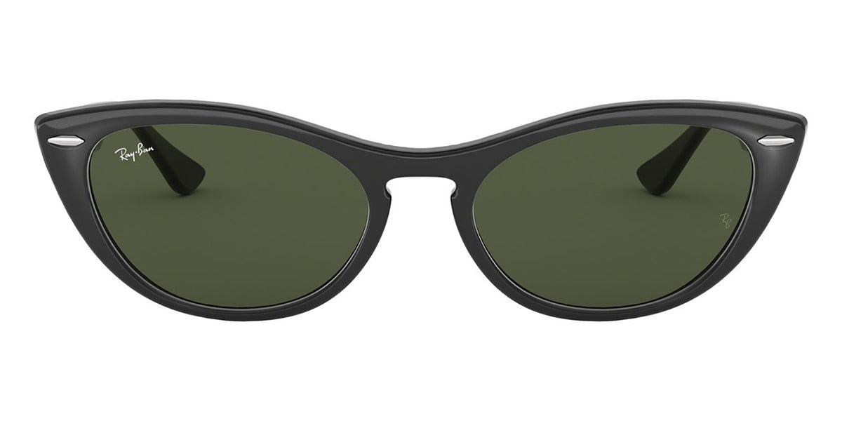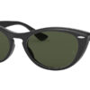 This cat eye Ray-Ban sunglass comes in a black frame with green lenses.