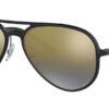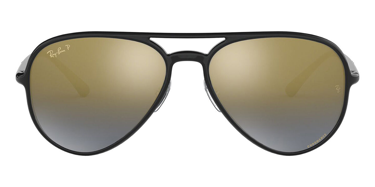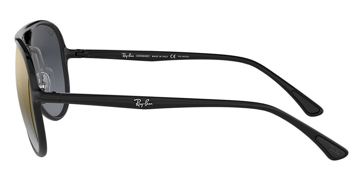 This aviator Ray-Ban sunglass comes in a black frame with blue with gold mirror polarised lenses.