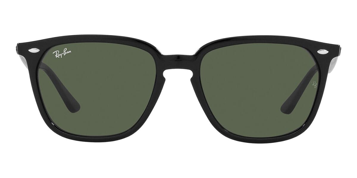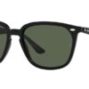 This square Ray-Ban sunglass comes in a black frame with dark green lenses.