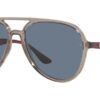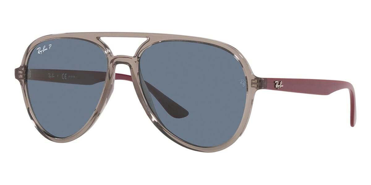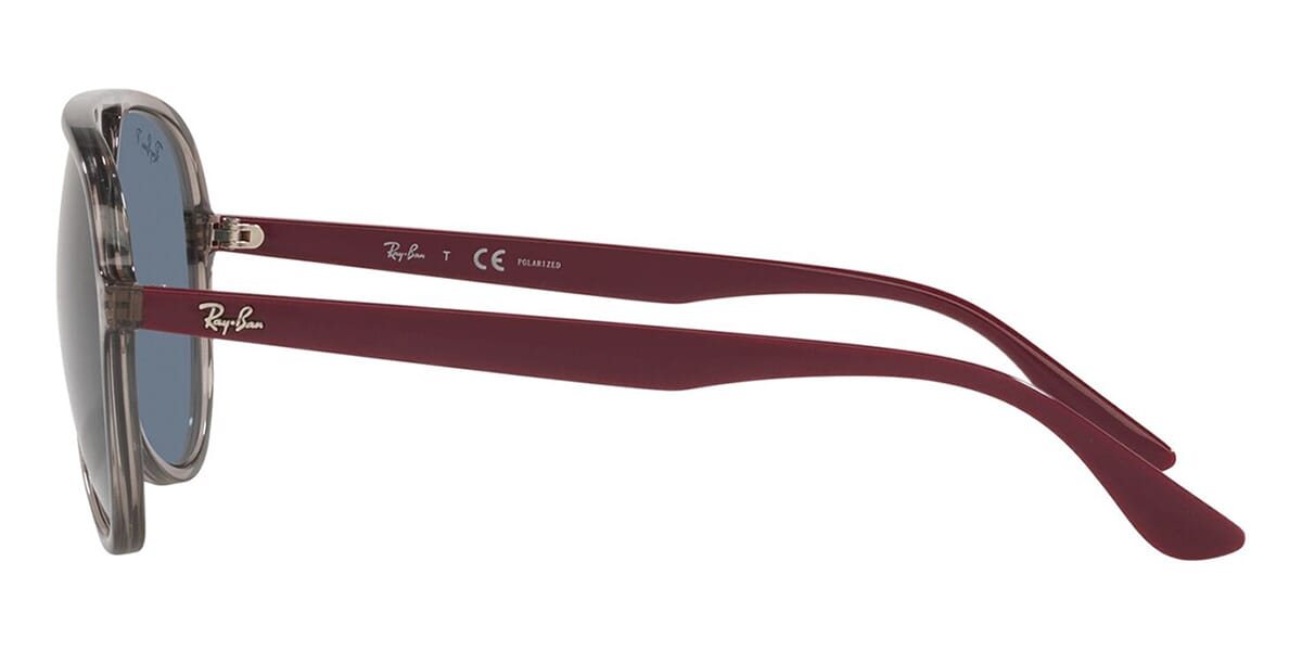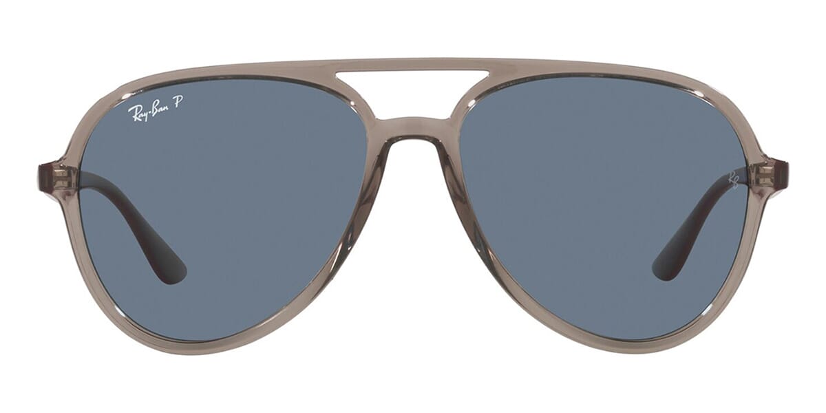 This aviator Ray-Ban sunglass comes in a transparent grey frame with dark blue polarised lenses.
