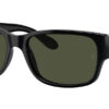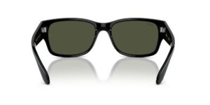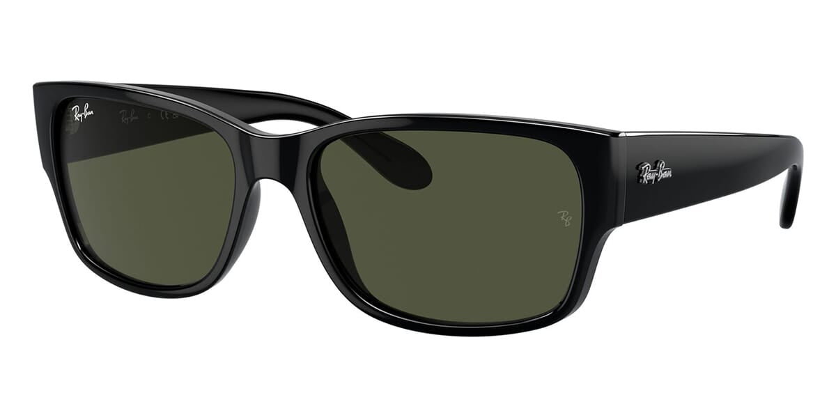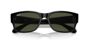 This rectangular Ray-Ban sunglass comes in a black frame with green lenses.