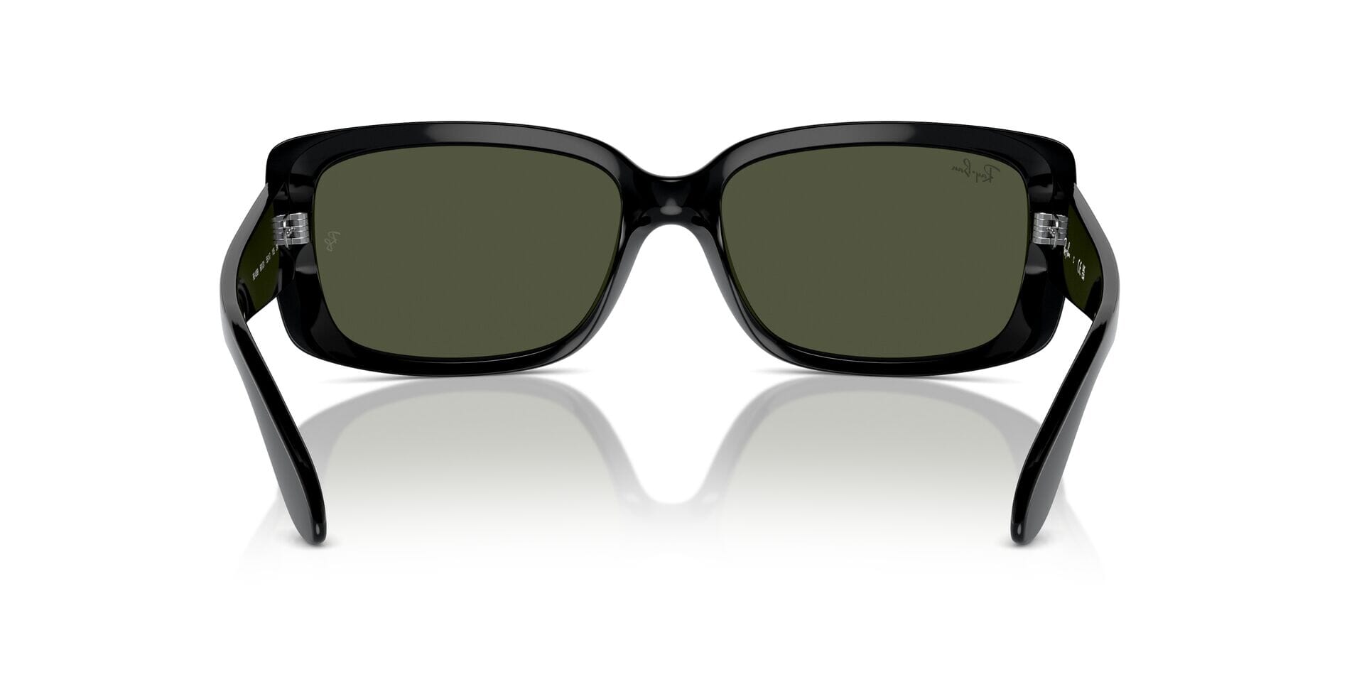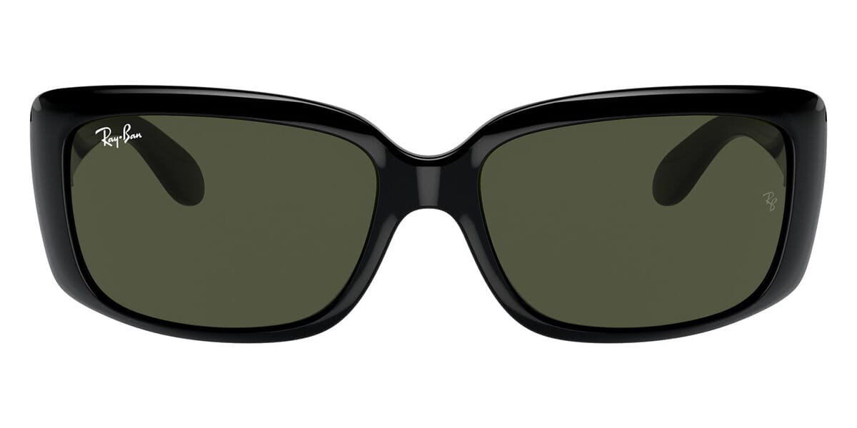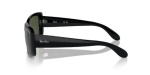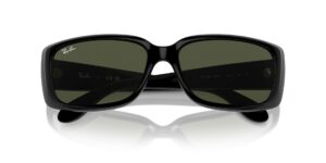 This rectangular Ray-Ban sunglass comes in a black frame with green lenses.
