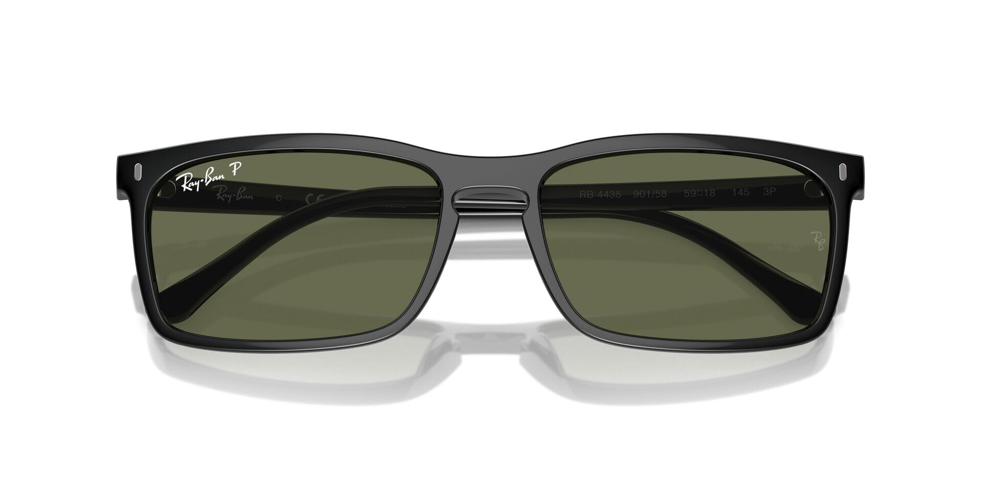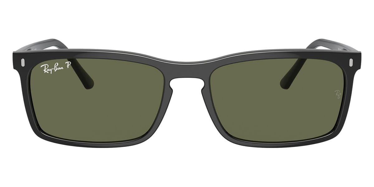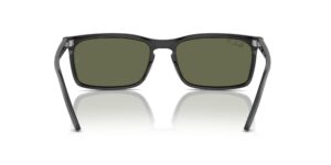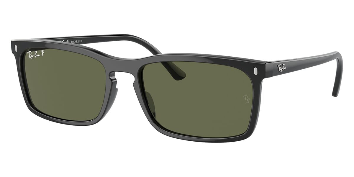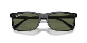 This rectangular Ray-Ban sunglass comes in a black frame with green polarised lenses.
