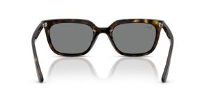 This square Ray-Ban sunglass comes in a havana frame with dark grey lenses.